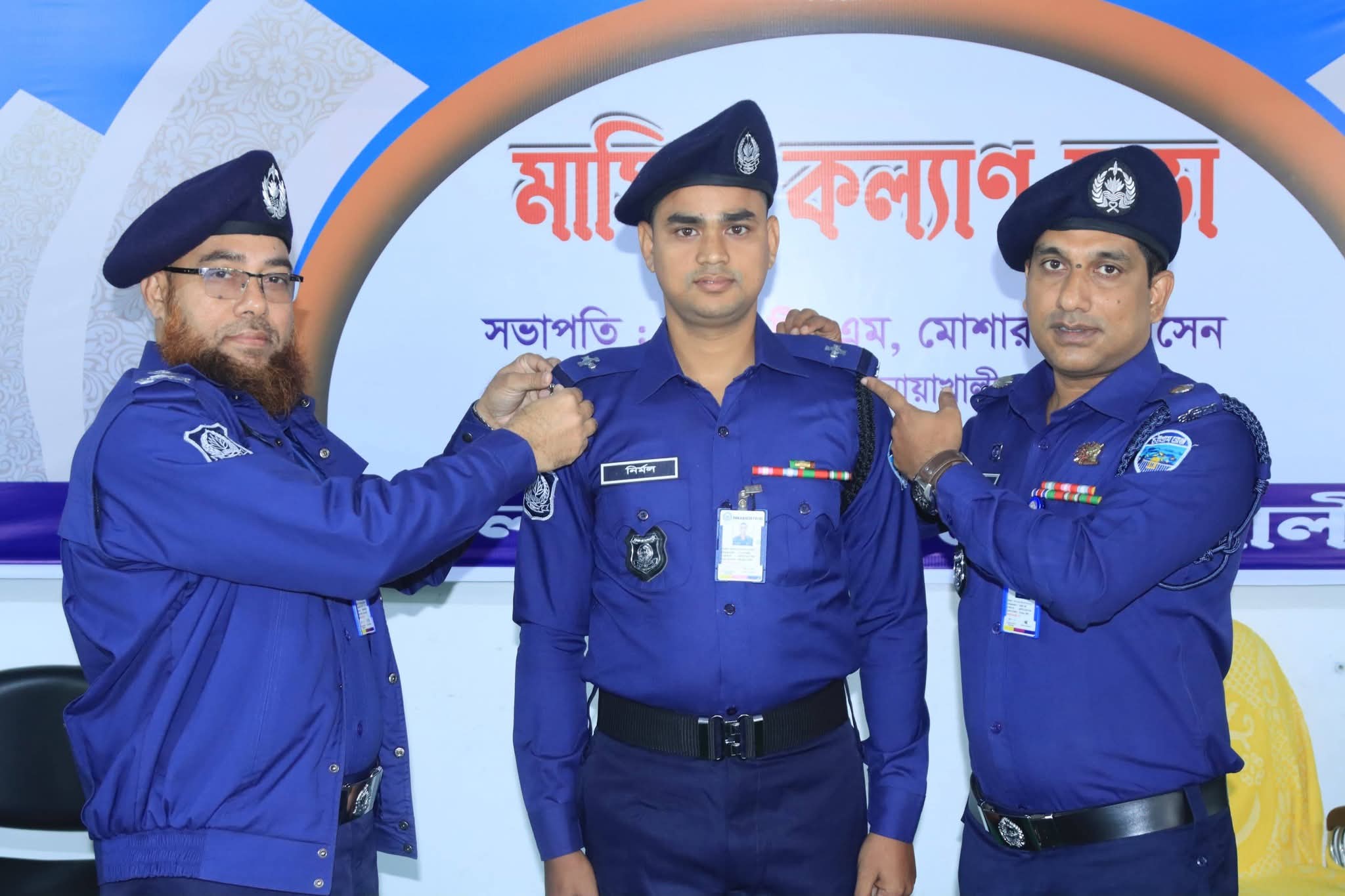 অনুষ্ঠানে নোয়াখালী জেলার সুযোগ্য পুলিশ সুপার জনাব টি. এম. মোশাররফ হোসেন মহোদয় পদোন্নতিপ্রাপ্ত পুলিশ সদস্যদের র্যাংক ব্যাজ পরিয়ে দেন।