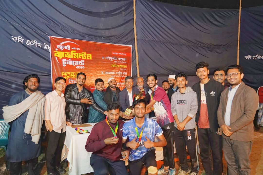 পুরস্কার বিতরণী অনুষ্ঠান সঞ্চালনা করেন মো: নাহিদ হোসেন, অভ্যন্তরীণ ক্রীড়া সম্পাদক, কবি জসীম উদ্দিন হল সংসদ।
