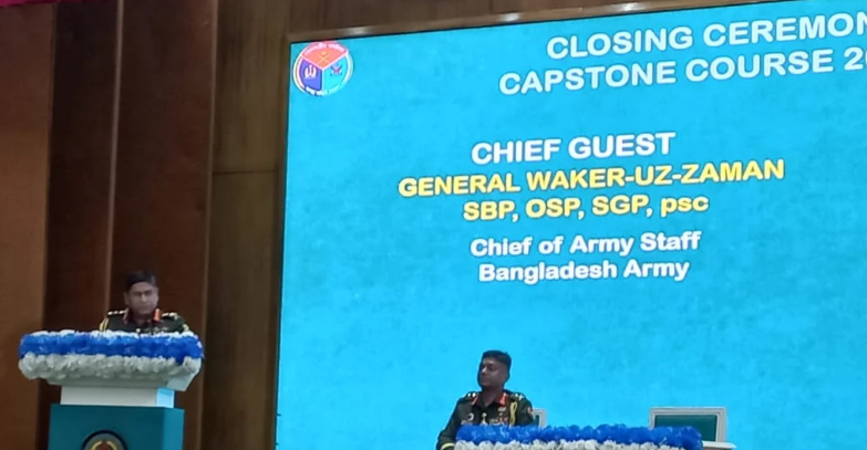 বৃহস্পতিবার দুপুর সাড়ে ১২টায় রাজধানীর মিরপুরে ন্যাশনাল ডিফেন্স কলেজ পরিচালিত ক্যাপস্টোন কোর্সের সমাপনী অনুষ্ঠানে প্রধান অতিথির বক্তব্যে এসব কথা বলেন সেনাপ্রধান।