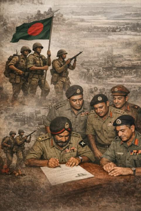 তবে বাস্তবতা হলো—মুক্তিযুদ্ধের ইতিহাস আজও আঞ্চলিক রাজনীতি, কূটনীতি এবং ক্ষমতার ভারসাম্যের সঙ্গে জড়িয়ে আছে। ফলে দলিল ও টেবিলের এই ভৌগোলিক বিভাজন যেন ১৯৭১-পরবর্তী দক্ষিণ এশিয়ার সম্পর্কের এক প্রতীকী মানচিত্র।